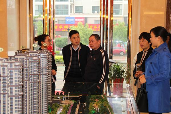 王力亞一行首先來到徽鹽·湖公館營銷中心,詳細詢問了項目運營以及銷售情況,并認真聽取了項目副總理沈時東對公司運行情況、徽鹽·湖公館項目施工進度以及長安廠棚戶區改造項目進展情況地匯報。